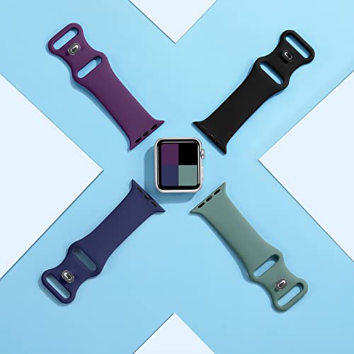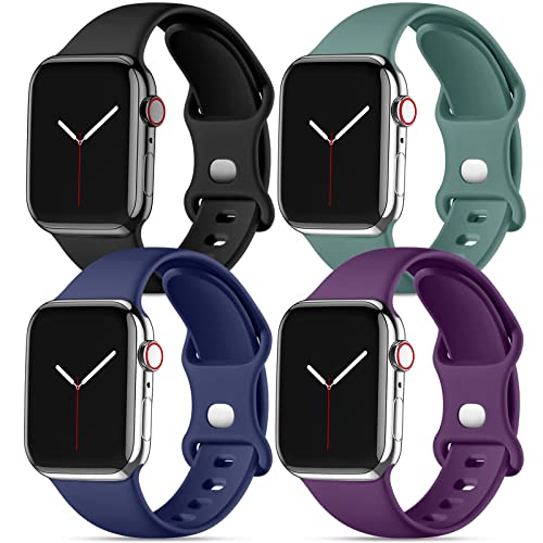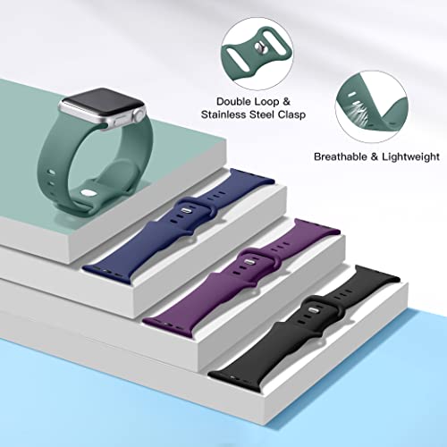 Dirrelo - Dirrelo Sport Band Compatible with Apple Watch Bands 42mm 44mm, [4-Pack] Soft Silicone Strap Wristbands for iWatch Series 3 5 6 4 2 1 SE Women Men, Large Black, Dark Purple, Dark Blue, Pine Green