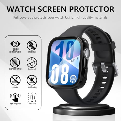Diruite - ديروت حافظة حماية من الزجاج المقوى لساعة هواوي فيت 4، شاشة حماية عالية الدقة فائقة النحافة من البولي كربونات، غطاء واقي صلب غير لامع من قطعتين، اسود واسود