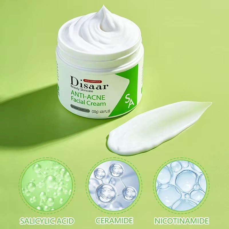 DISAAR Beauty - Disaarcream Anti Acne Face Cream with Salicylic Acid, Brightening and Repairing Skin, Moisturizing and Pore Cleansing, 120g