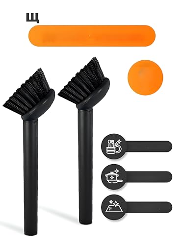 - This dish brush features a black color and a unique spatula edge that helps in efficiently removing stubborn food residue from dishes, making cleaning tasks quicker and more effective.