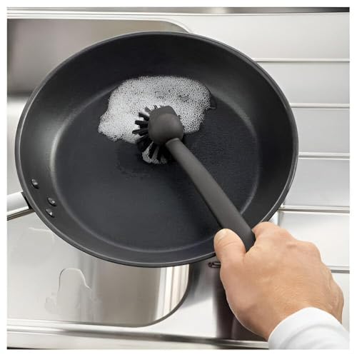 - Designed for use on metal surfaces, this dish brush excels in removing food debris from pots, pans, and other kitchenware made of metal, ensuring effective cleaning without causing damage to surfaces.