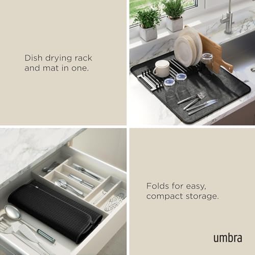 Generic - بساط تجفيف الأطباق مع رف تصريف، بساط مطبخ من المايكروفايبر، أسود