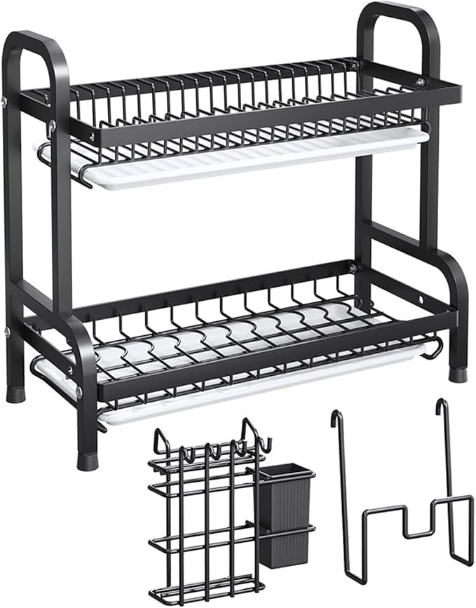 Generic - Dish Drying Rack (2 Floors) with Stable Base and Drainage Sink – The Perfect Choice for Kitchen Organization