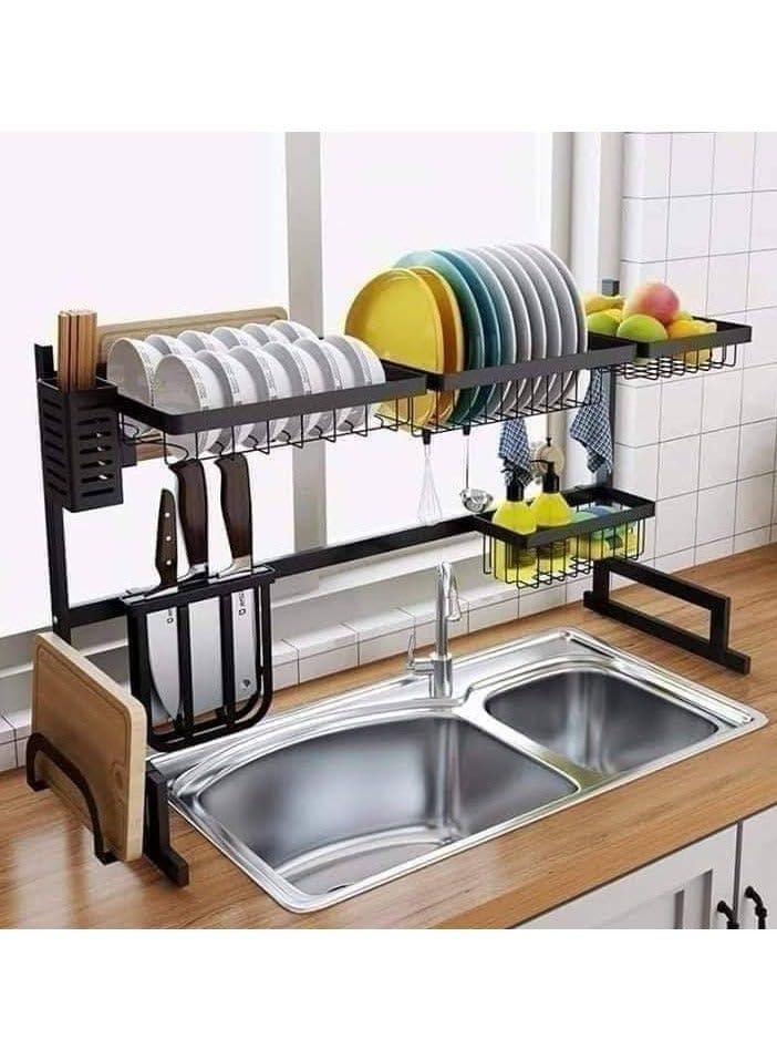 Generic - رف تجفيف الاطباق بعرض 85 سم، رف اطباق فوق طبقة من الستانلس ستيل، رف اطباق كبير لتجفيف الاطباق ومنظم المطبخ، موفر للمساحة، اسود