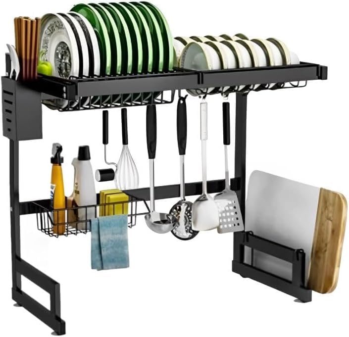 generic - Dish Drying Rack, Hanging Dish Colander, Dish Organizer, Cups, Cutlery, Plates, Pots, Sink Colander, Dishware, Stainless Dish Drain, Dish Drying Rack Black 65cm