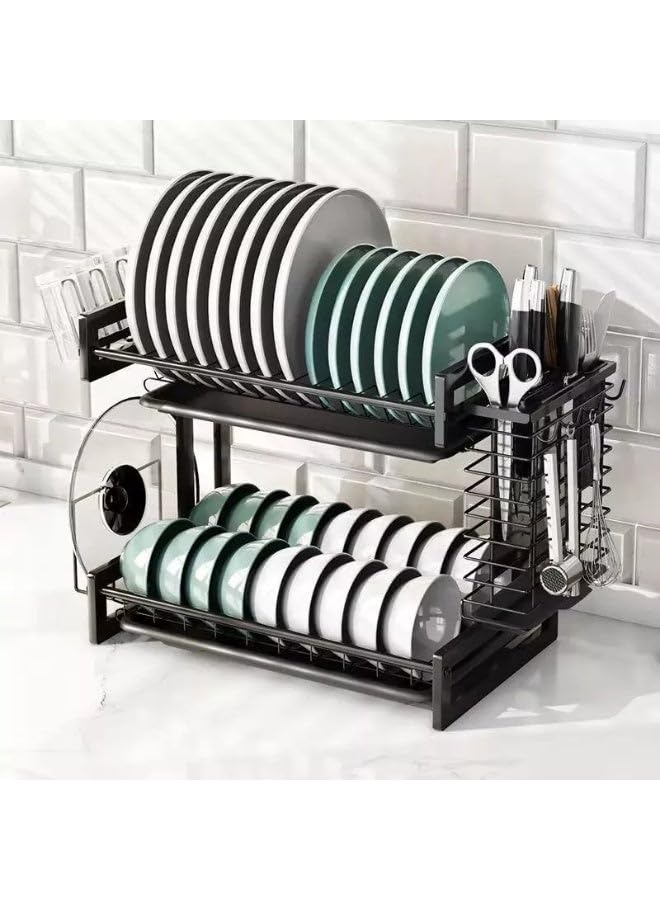 Generic - Dish drying rack: Two-tier dish rack for kitchen countertop and sink - Large dish drying rack with drainboard and utensil holders - Stainless steel dish drainer for kitchen organization and storage