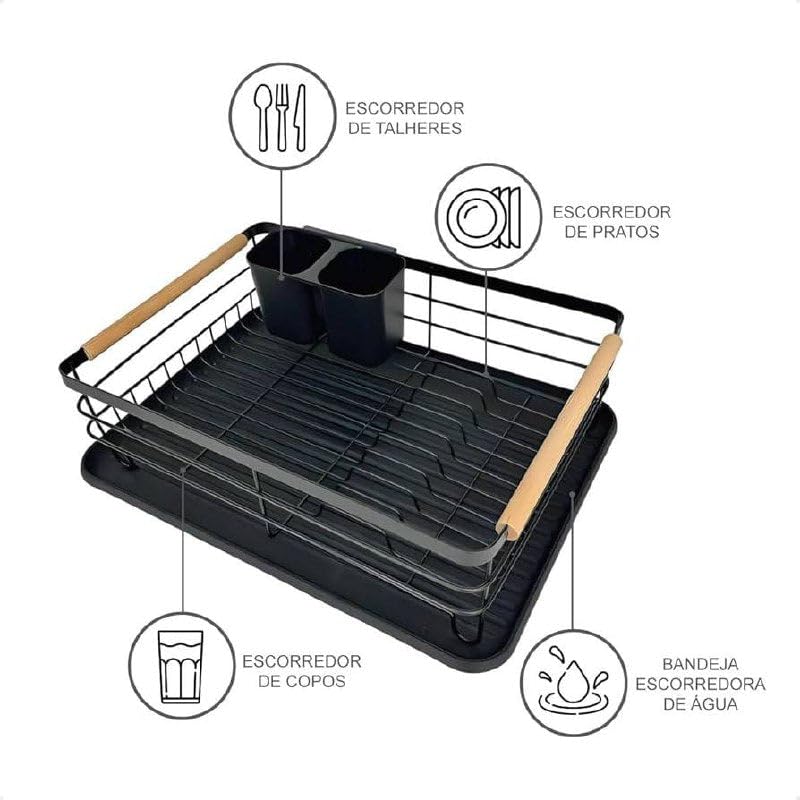 - هيكل متين: مصنوع بإطار معدني قوي ولوح تصريف بلاستيكي، تكمله مقابض خشبية لتعزيز المتانة والأناقة
