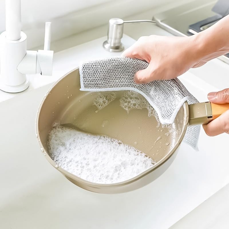 - Removes Tough Grease Fast – Stainless steel scrubbers cut through burnt food, oil, and stuck residue in seconds, saving time and effort after heavy Egyptian meals.