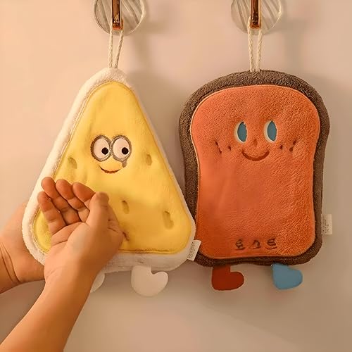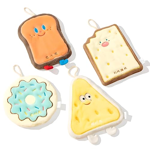 Generic - منشفة اطباق - مناشف أطباق معلقة مزخرفة تتميز بزخارف دونات غريبة الاطوار وصور توست ولمسات تشيز كيك، مصنوعة من الصوف المرجاني المريح ومقدمة بأربعة أشكال.