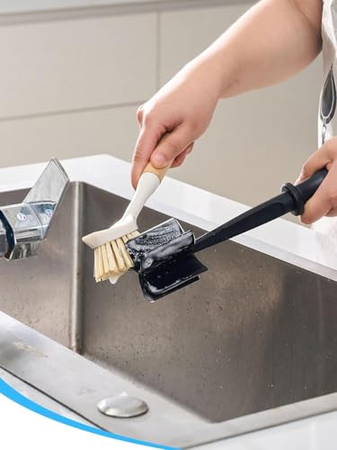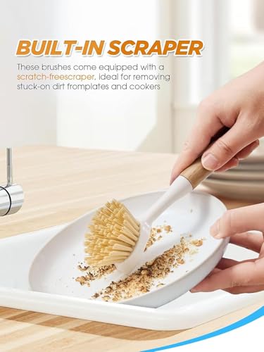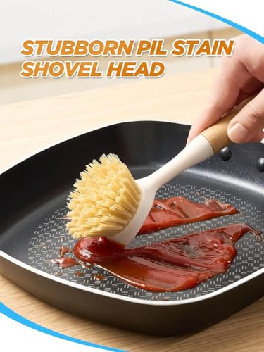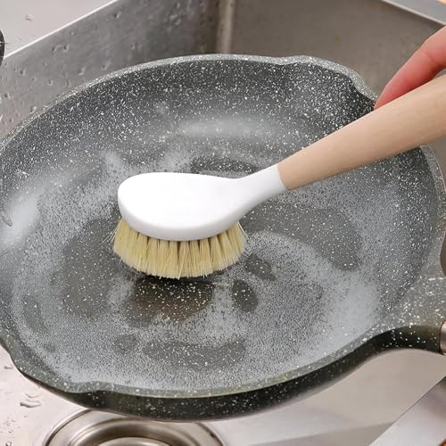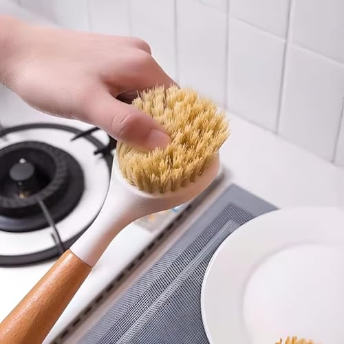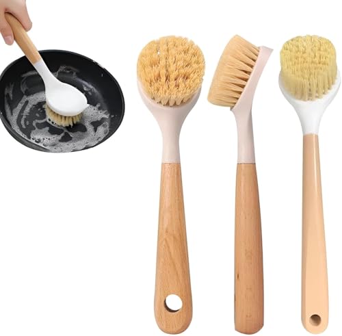 Generic - فرشاة غسيل الأطباق منظف فرش فرك بمقبض خشبي طويل قبضة جيدة وفرش غسيل أطباق المطبخ لتنظيف وعاء الأكواب، عبوة واحدة