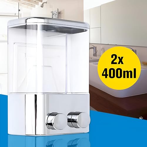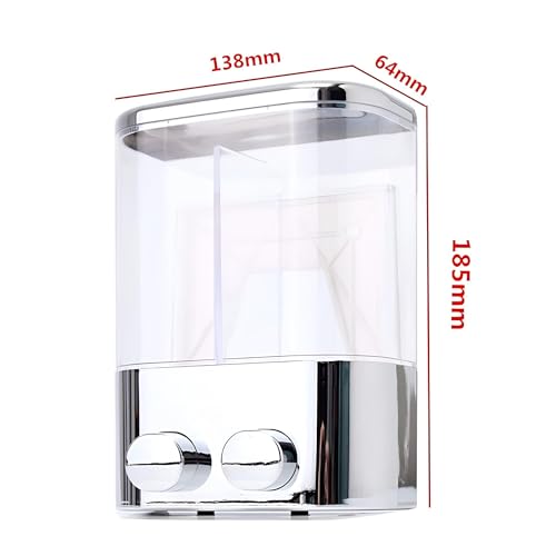 - يتميز هذا الموزع بحاويات مزدوجة بسعة 400 مل (عدد 2)، حيث يوفر سعة إجمالية تبلغ 800 مل لتلبية احتياجات جميع أفراد الأسرة. صغير الحجم ولكنه كبير، حجمه (185× 138× 64 ملم) يجعله مثاليًا للحمامات الأسرية، الفنادق، الجيم، أو الاستحمام الحديث حيث تكون الراحة والتخزين الواسع ضروريًا.