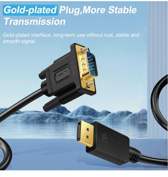 Generic - DisplayPort to VGA Display Cable, Gold Plated Connector, Flexible PVC, Black, Stable Signal Transmission