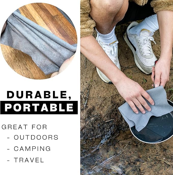 Generic - Disposable Dish Scrubber Daily Cleaning Scrub Sponges, Cloths for Kitchen, Household, Picnic, Camping and Office. Durable, Reusable, Non-Scratch, Recyclable, Easy to Carry (Grey, 2 packs (120 sheets))