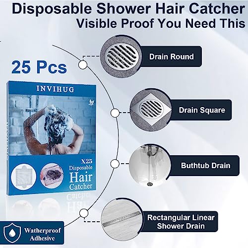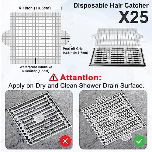 NALACAL - Disposable Hair Catcher, Shower Drain Mesh Stickers, 4.1- inch Square Shower Floor Drain Mesh Filter, Sink Strainer Stickers, Hair Catchers for Shower, Drain Hair Catcher Mesh Stickers (25 PCS)