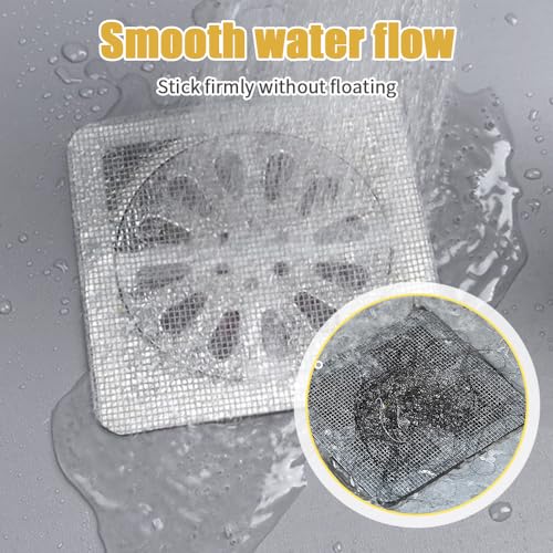 ROWPOZ - ستيكر لاصق لتصريف الشعر للاستعمال مرة واحدة، غطاء تصريف الدش القابل للاستعمال مرة واحدة، واقي تصريف الحمام، غطاء شبكي لاصق لتصريف الارضية، شاشة مربعة، سهل التركيب (50)