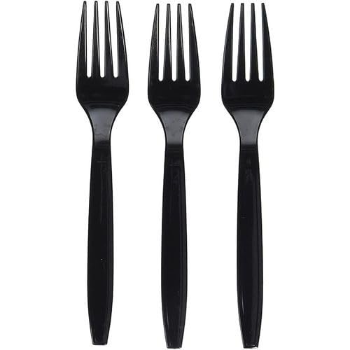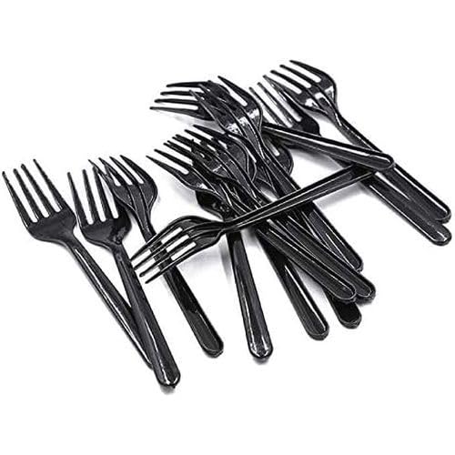 Generic - شوكة بلاستيكية شديدة التحمل للاستعمال مرة واحدة (اسود) (12)