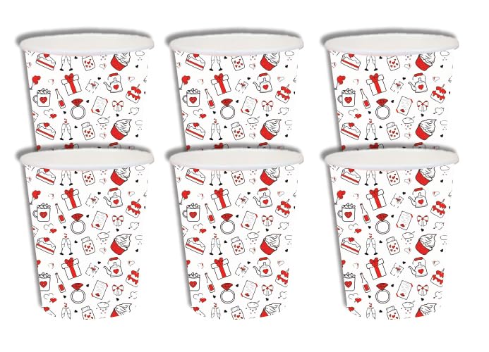 Generic - Disposable Party Cups Dessert Love Heart PatternWhite and Red Theme, Set of 6