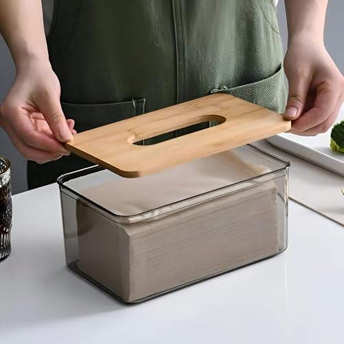 - 1. The high-quality acrylic tissue box features a reliable and transparent wooden lid, ensuring that the internal paper towels remain clean and protected from dirt effectively. Its smooth, transparent surface acts as a reminder to replenish paper towels at the right time, adding practicality to your space while maintaining a neat appearance.