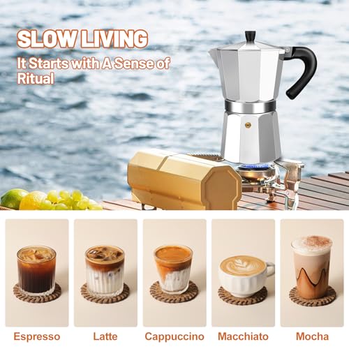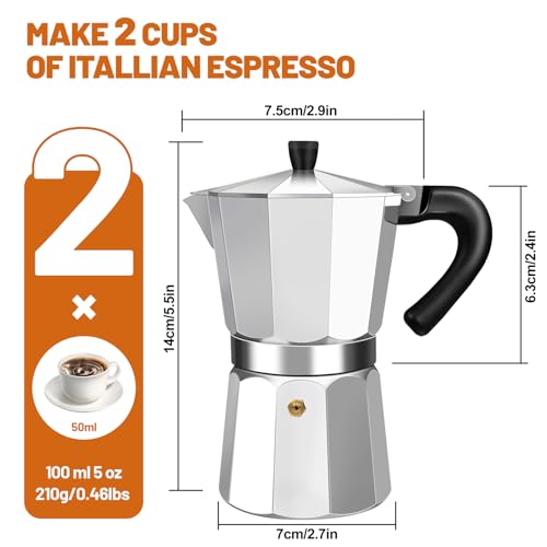 DITOSH - 2 Cup Aluminum Espresso Stovetop Coffeemaker Percolator Italian Coffee Maker Moka Express Classic Cafe Maker for Italian and Cuban Café Brewing Greca Coffee Maker 100ml 3.3oz