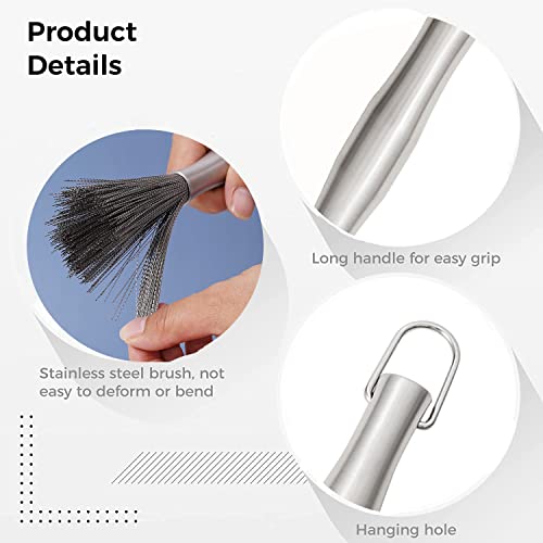 - 【Multifunction】Our steel brush can also clean bottles! Pinch the brush part then you can let it get into a thermos bottle for cleaning.The handle is long enoughThe flexibility to clean every corner of the bottle!
