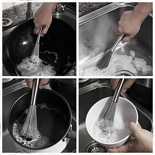 Diulazin - Cookware Scrubber Brush,Flexible 304Stainless Steel Cleaning Brush ,Dishwashing Scrubber for Pots Skillets Ovens Grills,Efficient Cleaning of Kitchen appliances (Stainless Steel Brush)