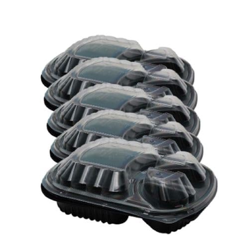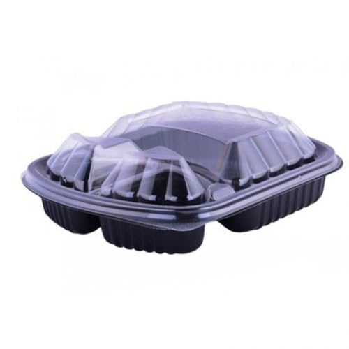 - تصميم متين: عبوات الطعام التي تستخدم لمرة واحدة مصنوعة من قواعد بلاستيكية سوداء متينة وأغطية بلاستيكية شفافة مقببة لرؤية وحماية رائعة.
