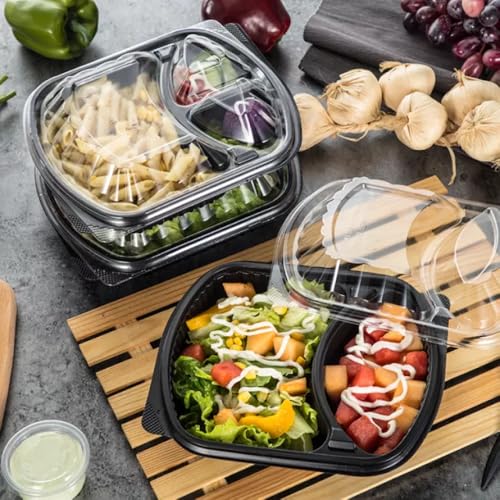 Generic - صندوق بلاستيكي مقسم للاستعمال مرة واحدة، عبوات إعداد الوجبات، عبوة من 25 قطعة مع غطاء