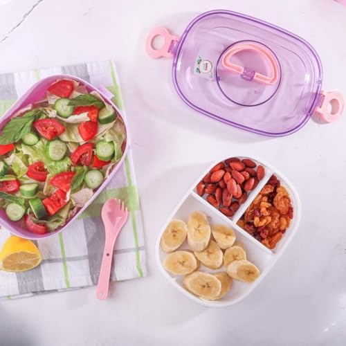- سعة تخزينية متعددة الاستخدامات: مثالي لتعبئة وجبات الغداء والوجبات الخفيفة والفواكه والخضروات وغيرها من الأطعمة مع أقسام منفصلة للأطعمة الرطبة والجافة.