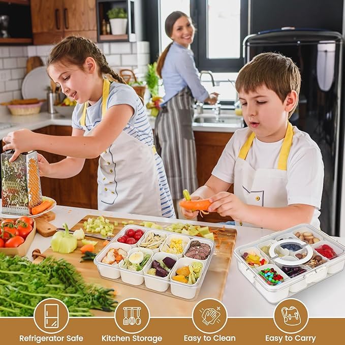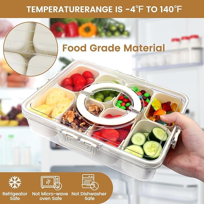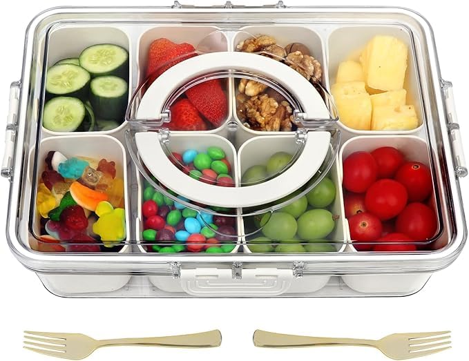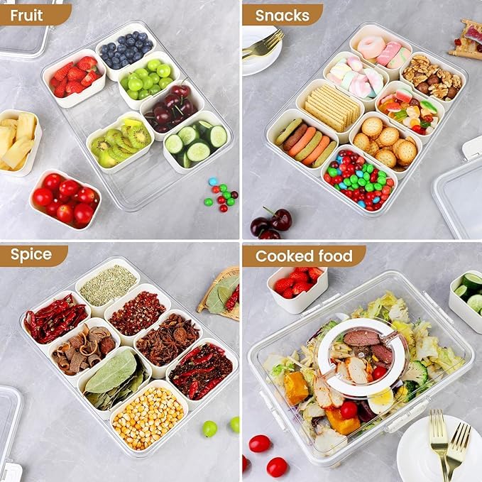 - VERSATILE DESIGN: 8 separate compartments perfect for organizing and serving various snacks, fruits, nuts, and candies while keeping them fresh and separated