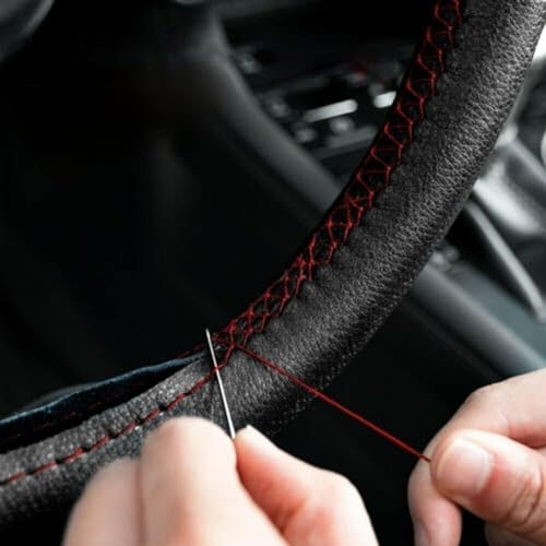 Generic - DIY Premium Leather Steering Wheel Cover With Red Thread For Cars - Hand-stitched Steering Wheel cover - Universal Size