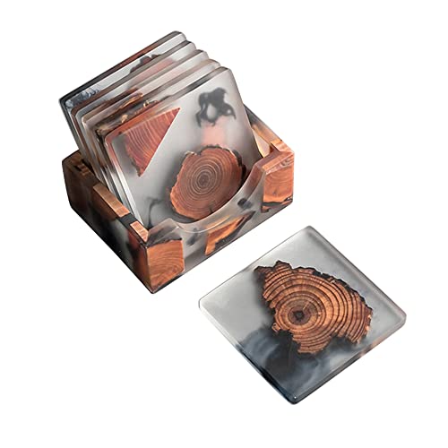 DIYOMR - DIYOMR Epoxy Coaster for Drinks,Resin Teacup Mat Coffee Coaster,Modern Cool Coaster Art for Home Decor Office Coffee Bar Table Protection (6 Square Set)