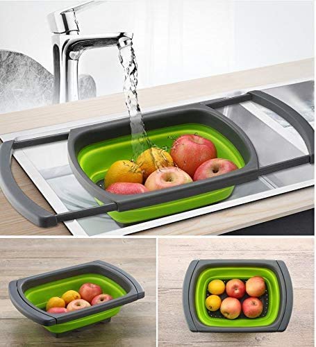 Dizgoy - Kitchen Collapsible Colander with Extendable Sturdy Handles Over The Sink BPA-Free Silicone Space Saving Folding Vegetable Collander Fruit Basket Pasta Strain