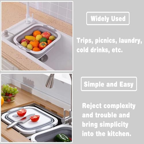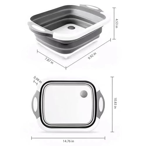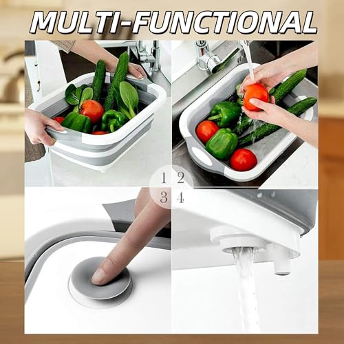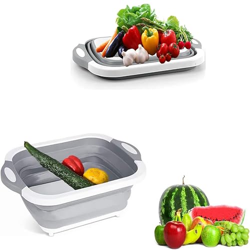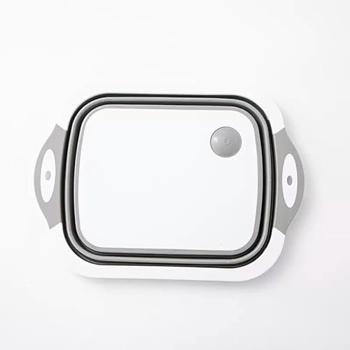 DJRDym - Collapsible Cutting Board, Multi-functional Folding Washing Basin Cutting Board, Washing and Draining Veggies Fruits Storage Basket for BBQ Prep/Camping/Picnic (Gray White)