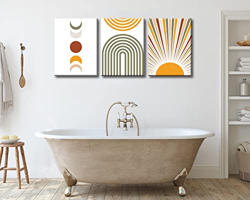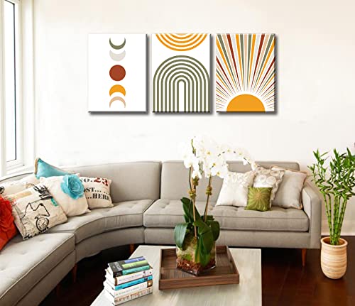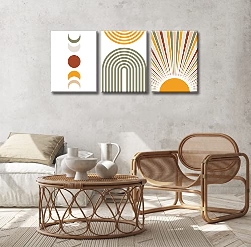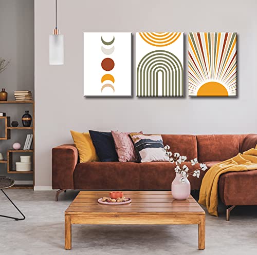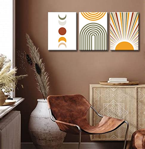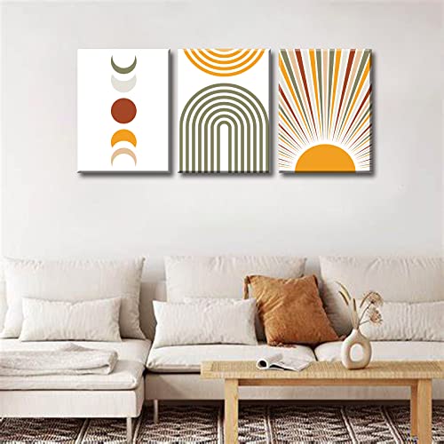 DJSYLIFE - DJSYLIFE Boho Wall Art Colorful Abstract Geometric Canvas Mid-Century Modern Prints Boho Sun Moon Wall Decor for Bedroom Living Room Office 12" W x16 H x3