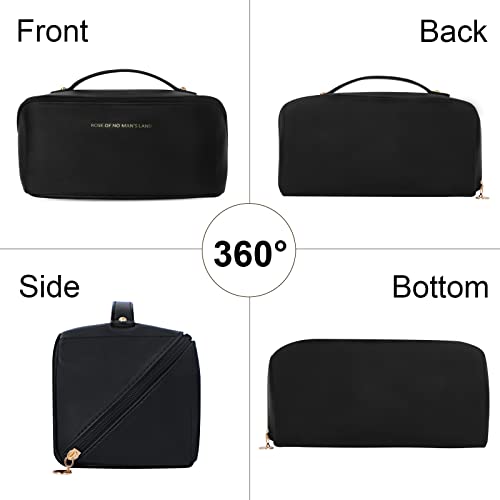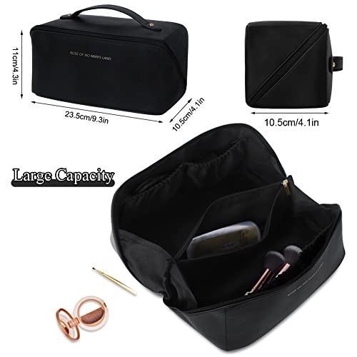 DKIIL NOIYB - Large Capacity Make Up Bag Travel Cosmetic Bag for Women, PU Layered Makeup Organiser Bag Travel Bags Portable Waterproof Toiletry Bag Pouch Wash Makeup Bag with Zip, A04-black, 24