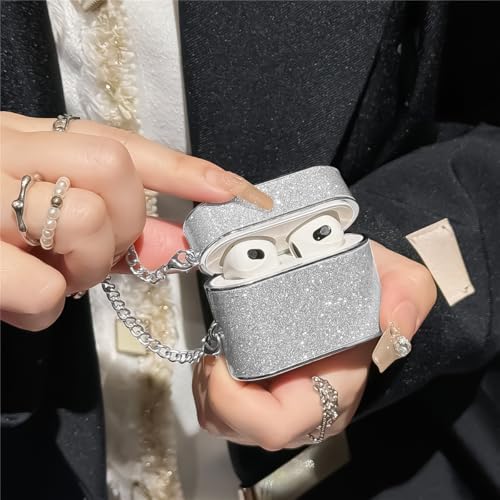 Dl3 Mobilak - DL3 Mobailk For Airpods Pro 2/1 Cute Sparkle Bling Shiny Case for Girls Women, Glitter Protective Cover for Airpod Pro 2nd/1st Generation (2019/2022/2023) with Metal Chain & Removal Tool (Silver)