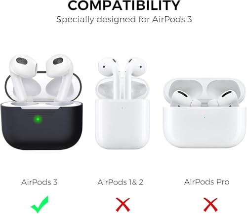 - [مصمم لسماعات ايربودز 3] جراب ابل ايربودز الجيل الثالث 2021، ليست لسماعات ايربودز السلسلة 1 والسلسلة 2 والسلسلة 2 برو وجراب شحن ايربودز 3 غير متضمن.