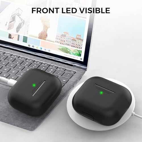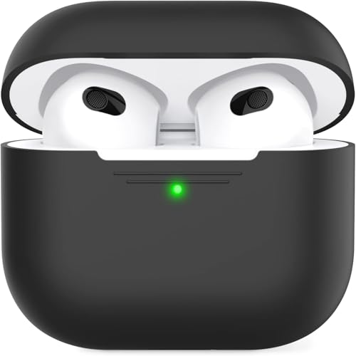 Dl3 Mobilak - جراب حماية لسماعات ايربودز 3، اكسسوارات واقية من السيليكون مع سلسلة مفاتيح متوافقة مع ابل ايربودز الجيل الثالث 2021 للنساء والفتيات، إضاءة ليد أمامية مرئية من دلع موبايلك (أسود)