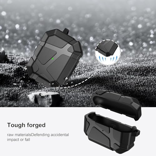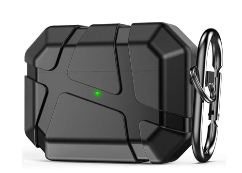 Dl3 Mobilak - Dl3 Mobilak AirPods Pro 3 (2025) Case, Shockproof Silicone Protective Case for Apple AirPods Pro 3 (2025) Generation, Hard Shell Design, Anti-Scratch, Front LED Light with Carabiner (Black)