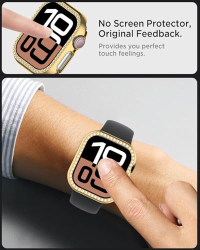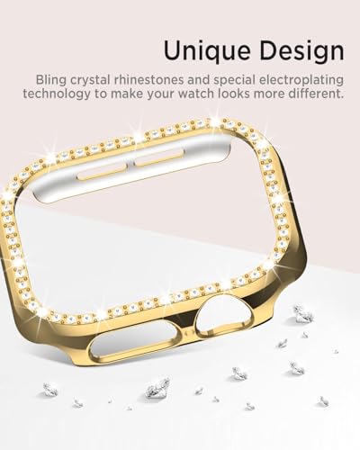 Dl3 Mobilak - Dl3 Mobilak Bling Case Without screen protector for Apple Watch Series 10 46mm, Hard PC Frame Case, Crystal Diamonds Bumper Cover for Women Girls, Slim Protective Cover for iWatch 10 46mm (Gold)