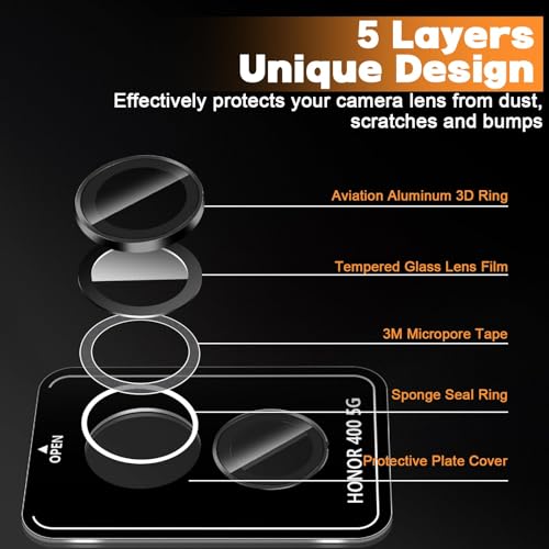 Dl3 Mobilak - واقي عدسة الكاميرا لملحقات هونر 400 شبكة الجيل الخامس 5G، واقي شاشة معدني بحلقة فردية من الزجاج المقوى بدرجة صلابة 9، مناسب للجراب ومضاد للخدش من دلع موبايلك (أسود)