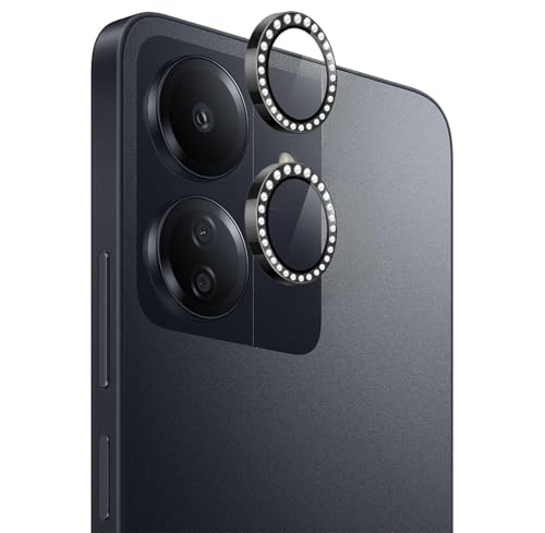 Dl3 Mobilak - Dl3 Mobilak Camera Lens Protector for Xiaomi Redmi 13C / Xiaomi Poco C65 Accessories, 9H Tempered Glass Metal Individual Ring Camera Cover Screen Protector, Case Friendly, Anti Scratch (Diamond Black)