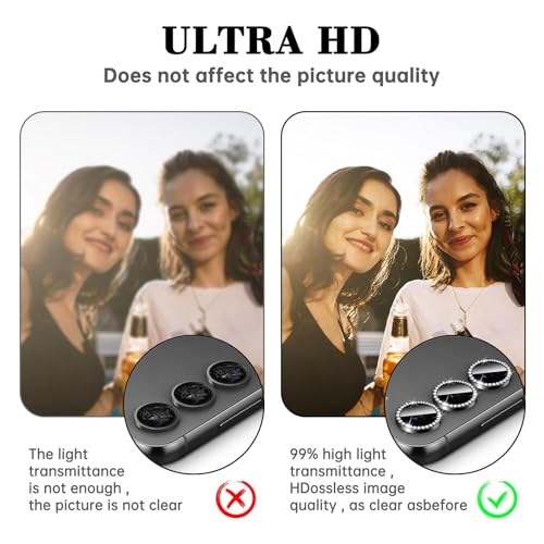 - 【9H Ultra Protection】Made of 9H hardness coated tempered glass and aviation aluminum alloy. This camera protector is sturdy and not bulky, can prevent the camera from scratches, scuffs and bumps. Lightweight, Dustproof, Waterproof, Oleophobic and will not affect the use of the phone case.