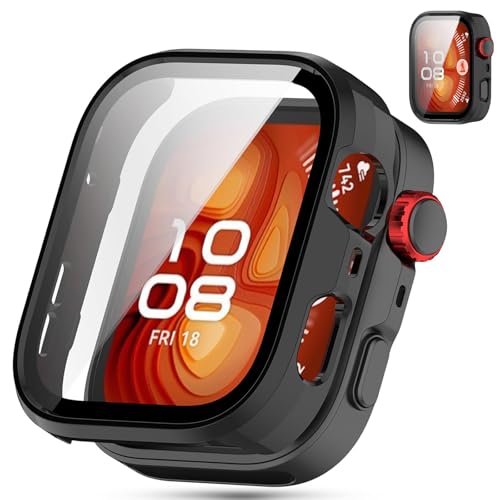 Dl3 Mobilak - جراب حماية متوافق مع ساعة هواوي فيت 4 برو من دلـع موبايلك، جراب صلب رفيع بتغطية كاملة، شاشة حماية من الزجاج المقوى مدمج لساعة هواوي فيت 4 برو (أسود)