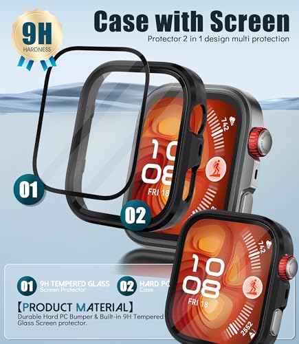 - 【حماية شاملة بزاوية °360】- شاشة حماية من الزجاج المقوى بدرجة صلابة 9 يحمي شاشة ساعتك، بالإضافة إلى جراب عالي الجودة، يغطي الحواف الأمامية والمنحنية بالكامل لساعة هواوي فيت 4 برو، مما يوفر حماية كاملة لساعتك الذكية من الخدوش أو السقوط أو الصدمات العرضية.