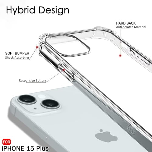 - Compatible with iPhone 15 Plus clear case camera protection.