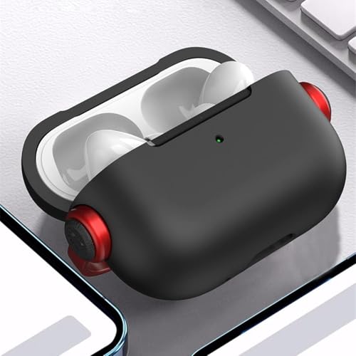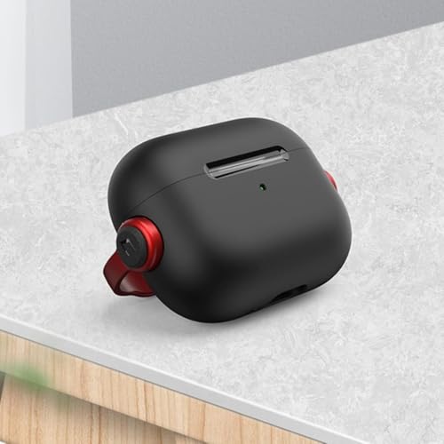 Dl3 Mobilak - دلـع موبايلك جراب حماية لسماعات ايربودز برو 3 (2025) [مع غطاء للاغلاق] [مصباح LED امامي مرئي] [مع حزام معصم] جراب حماية متوافق مع سماعات ايربودز برو 3 (2025) (اسود واحمر)
