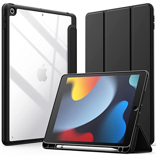 Dl3 Mobilak - Dl3 Mobilak Case for iPad 10.2-Inch (9th/8th/7th Generation, 2021/2020/2019),Clear Shockproof Back Cover Built-in Pencil Holder,Auto Sleep/Wake (Black)