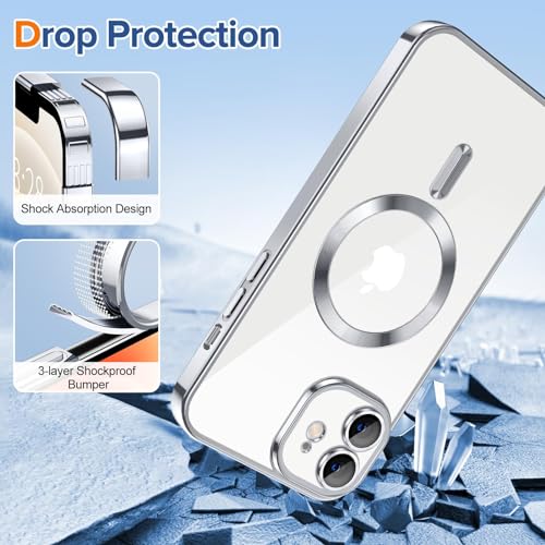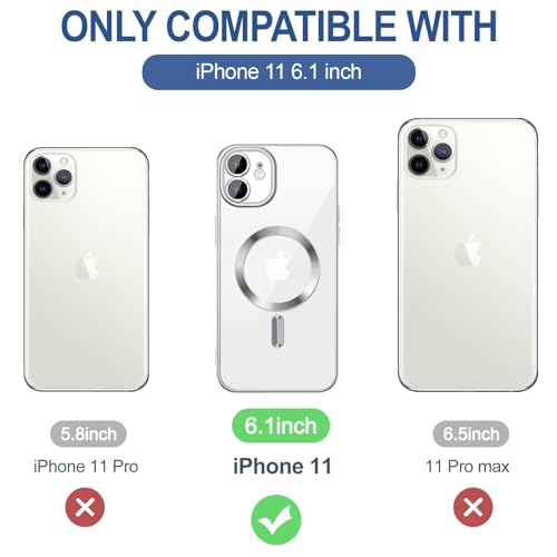 Dl3 Mobilak - Dl3 Mobilak Case for iPhone 11 (6.1 Inch) Compatible with MagSafe with Camera Lens Protector,Magnetic Clear Case Full Protection Plating Anti-Scratch Slim Thin Case Cover (Silver)