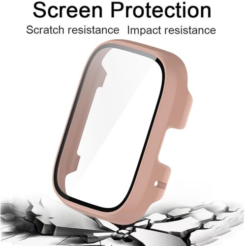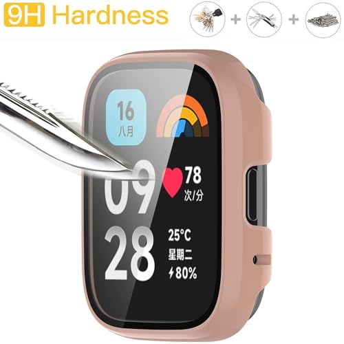 Dl3 Mobilak - جراب حماية مع شاشة حماية خاص بساعة شاومي ريدمي ووتش 3 اكتيف/ ريدمى ووتش 3 لايت، غطاء حماية كامل من البولي كربونات الصلب بتغطية كاملة، غشاء مدمج من الزجاج المقوى عالي الحساسية من دلع موبايلك (وردي)